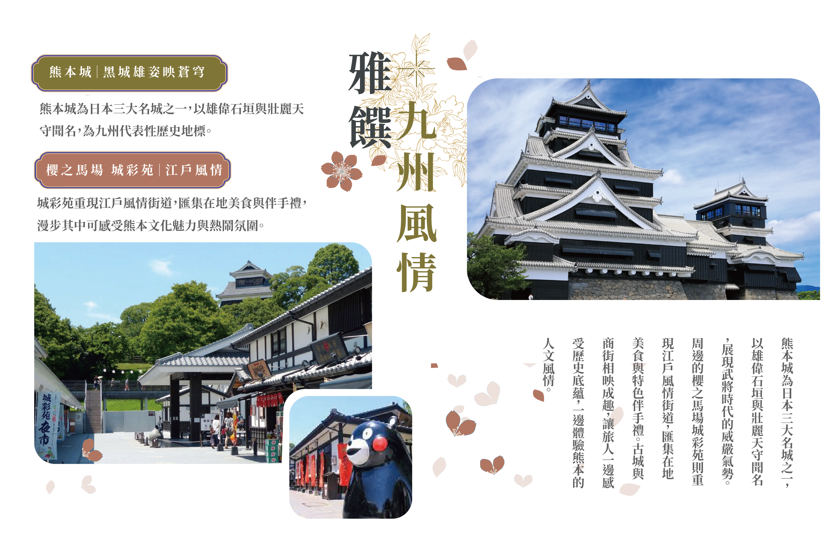 高雄小港機場/九州(熊本)機場 →水前寺成趣園 → 日本三大名城~賞櫻❀【熊本城(上天守閣)】→ 江戶城下町重現~櫻之馬場.城彩苑.櫻之小路.名產點心街道 → 飯店