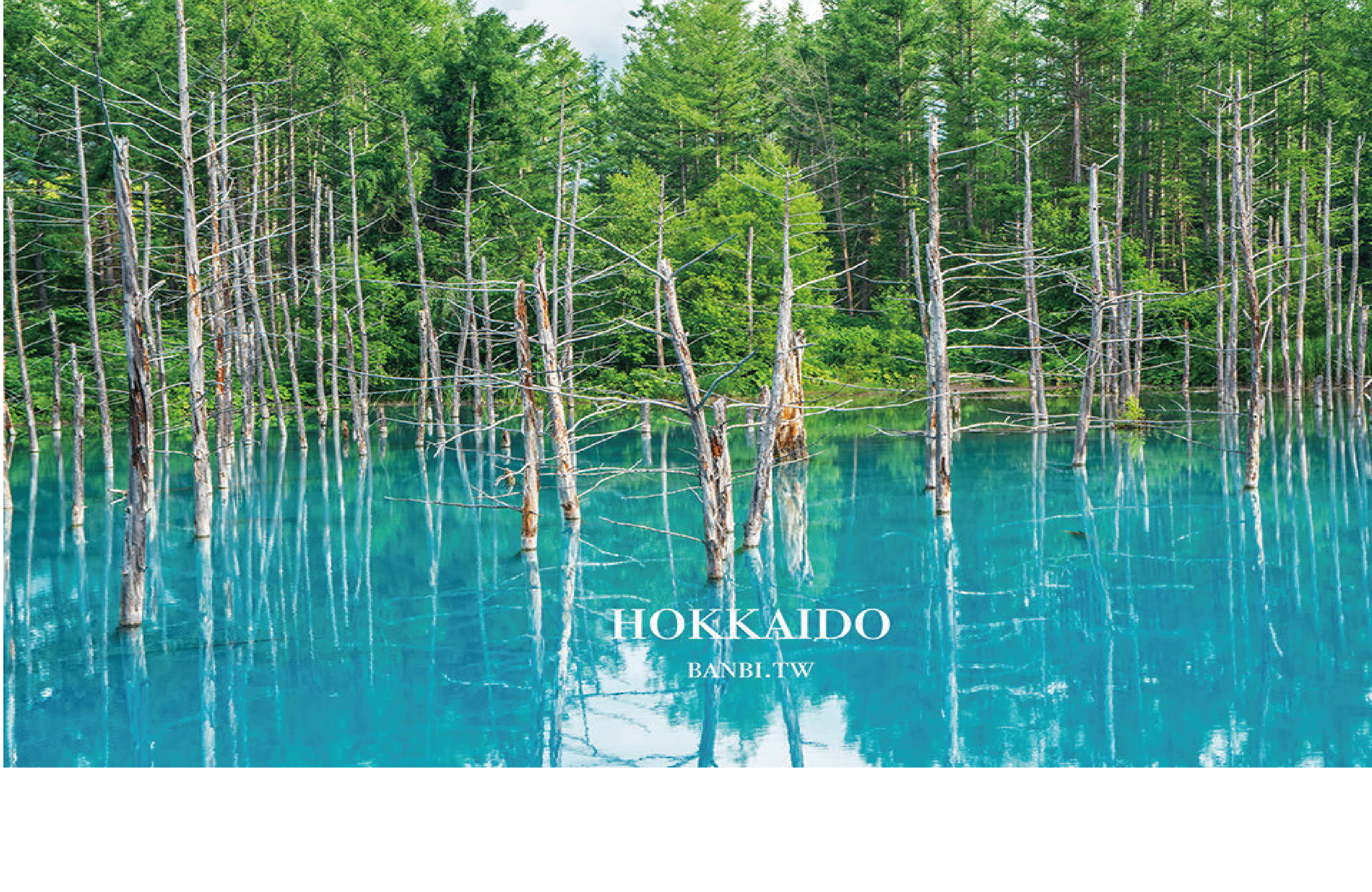 北海道美瑛除了山丘田園風景外, 近年來又多了一個名點「青池」,據說青池附近的白鬚瀑布因含有氫氧化鋁等白色系的微分子, 和美瑛川溪水混和後而產生出一種膠質, 陽光照射湖面跟膠質微分子產生衝突, 波長短的青光就容易亂射四散, 當青光傳射到人眼睛裡時, 青池看起來才會是青綠色的。