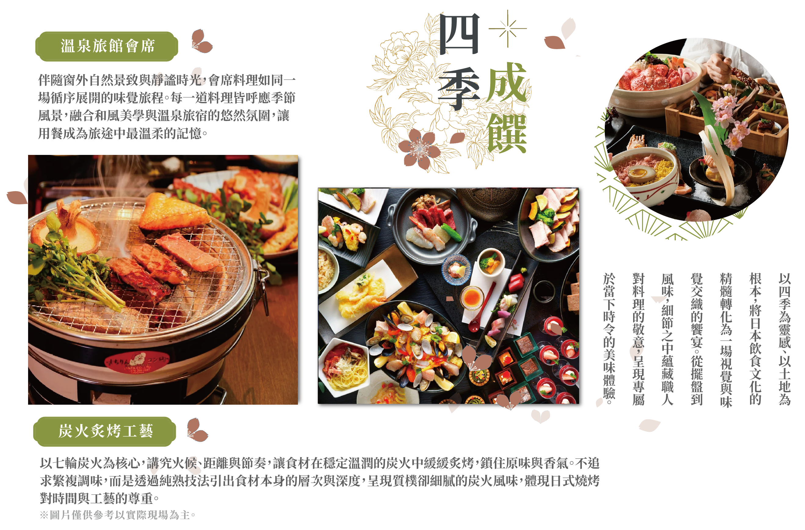 早餐:飯店內享用 / 午餐:啓修庵·七輪炭火炙烤工藝 / 晚餐:飯店一泊二食