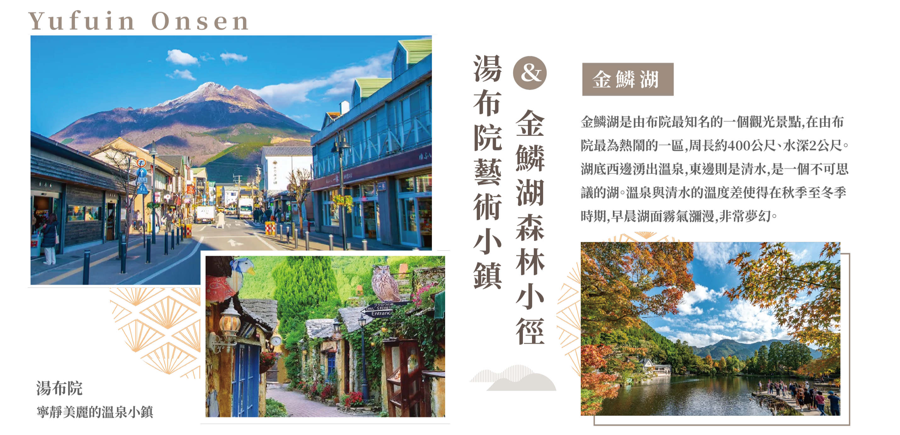 前往九州人氣小鎮湯布院,漫步藝術氣息濃厚的街道,參觀由布院名景「金鱗湖」,湖光山色令人心曠神